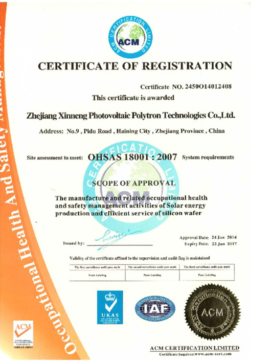 公司通過OHSAS18001:2007職業健康安全管理體系認證 2014-01-24 00:00:00 浙江芯能光伏科技股份有限公司 Viewd 3697 Previous公司再次參加國際國內光伏博覽會 NextNo Information