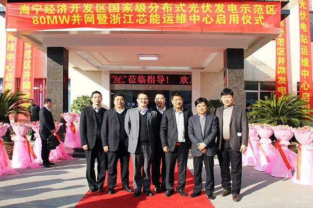 2014年12月30日,海寧經(jīng)濟(jì)開發(fā)區(qū)“國(guó)家級(jí)分布式光伏發(fā)電示范區(qū)”80兆瓦并網(wǎng)暨浙江芯能運(yùn)維中心啟用儀式在公司總部舉行,林毅、張煒芬等有關(guān)市領(lǐng)導(dǎo)、賀強(qiáng)等專家學(xué)者和多位上市公司企業(yè)家代表出席儀式。