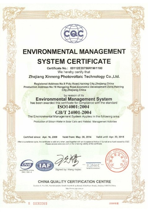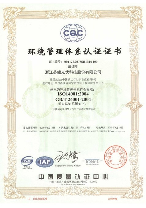 公司通過ISO14001:2004環(huán)境管理體系認(rèn)證 2009-04-16 00:00:00 浙江芯能光伏科技股份有限公司 瀏覽次數(shù) 7009 上一條公司通過ISO9001:2000質(zhì)量管理體系認(rèn)證 下一條浙江省科技廳常務(wù)副廳長(zhǎng)壽劍剛蒞臨我司調(diào)研