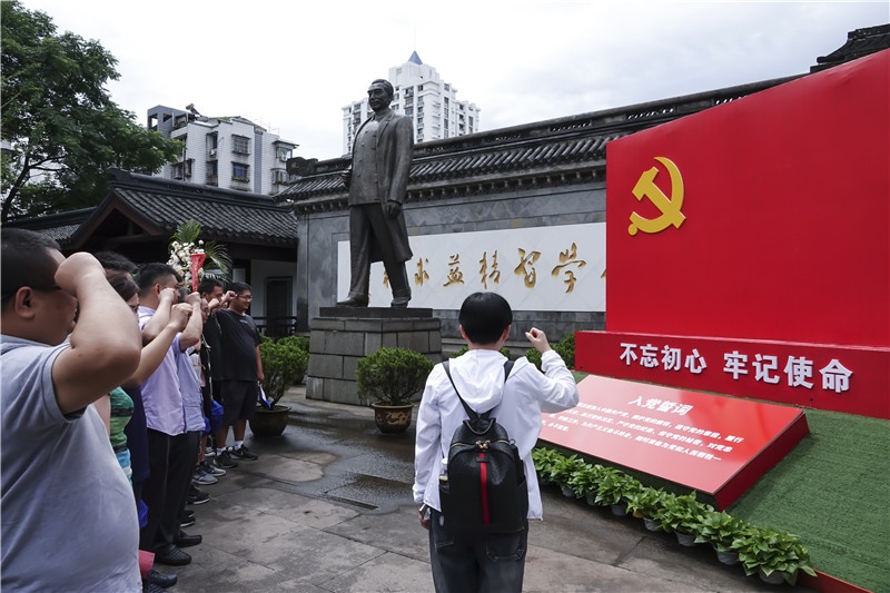 黨員們的第一站來到了周恩來祖居,面向黨旗鄭重宣誓并合影留念,習(xí)近平總書記說過:“周恩來是近代以來中華民族的一顆璀璨巨星,是中國共產(chǎn)黨人的一面不朽旗幟”,黨員們在周總理身上學(xué)習(xí)到了中國共產(chǎn)黨人的崇高精神,感染這一代又一代中國共產(chǎn)黨人,黨員們來到這里,就是要在工作、學(xué)習(xí)、生活中學(xué)習(xí)他的優(yōu)秀品德,發(fā)揚(yáng)他的優(yōu)良傳統(tǒng),傳承他的精神風(fēng)貌。