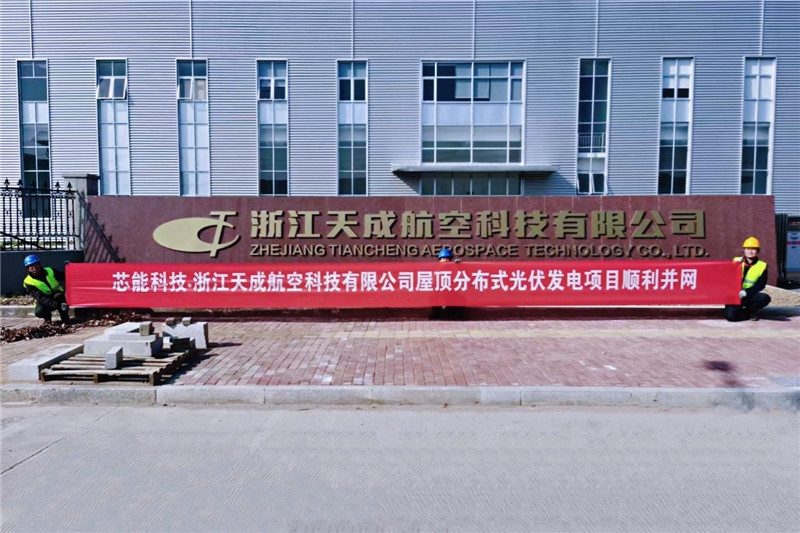 2020年12月4日,由芯能科技投資建設的浙江天成航空科技有限公司分布式光伏電站項目經天臺電力局驗收,順利并網。
