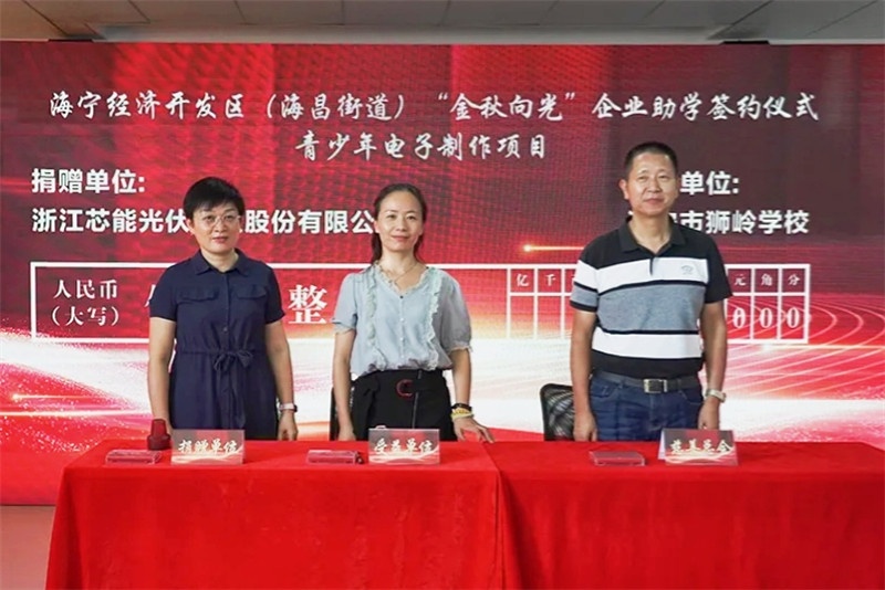 9月17日,在區(街)“慈心向善,共富同行”——“金秋向光”企業助學簽約儀式中,芯能科技與海寧市獅嶺學校達成捐贈意向,款項將支持青少年電子制作項目,旨在激發青少年參與科技創新的熱情,塑造新時代的未來之“芯”青年。