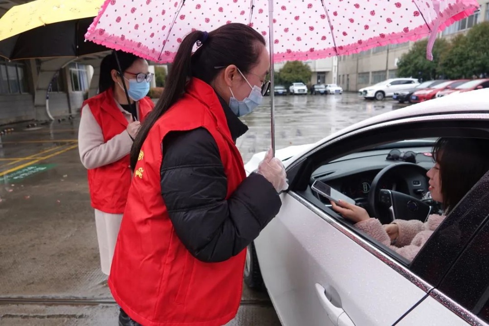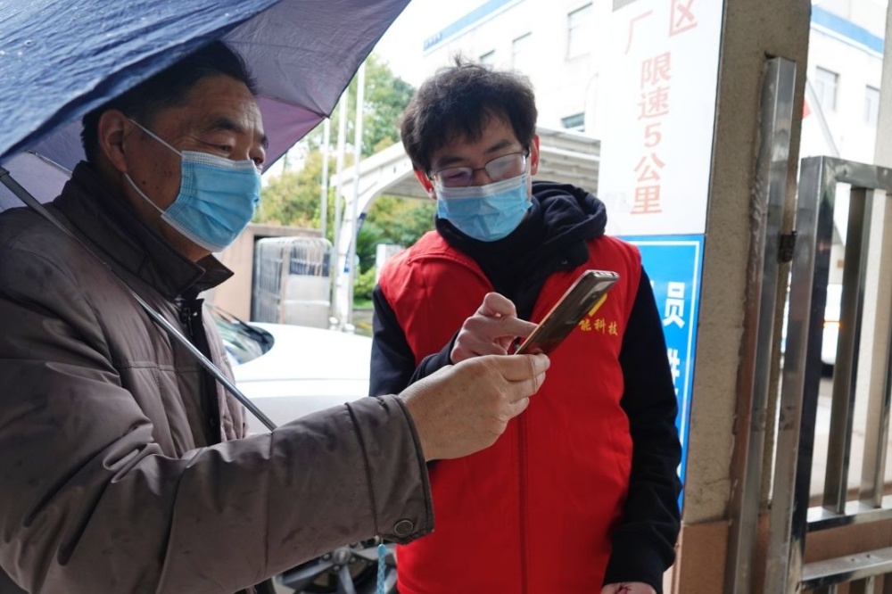 由于員工上班高峰期間門衛(wèi)測溫查碼工作量較大,黨員志愿者聽聞后毅然加入查碼隊伍,努力守好公司防疫“安全門”。志愿者們每天在上班時段提前30分鐘到崗,他們戴好口罩,身穿紅馬甲,對進入員工和車輛進行檢測,引導員工有序測溫掃碼。