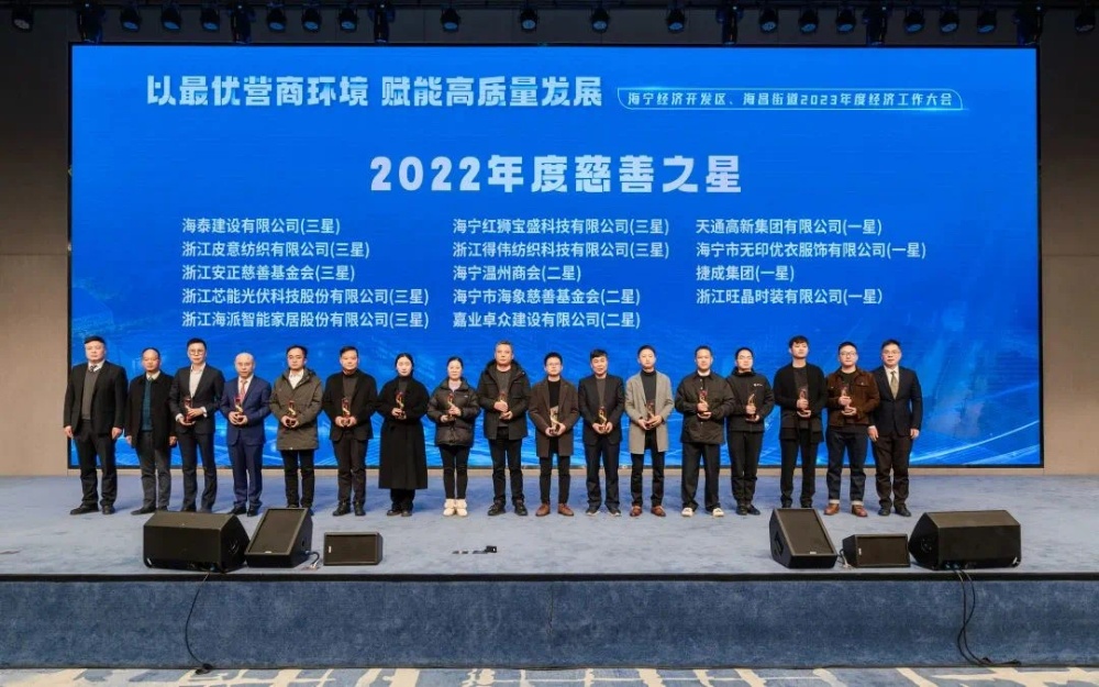 2023年2月8日,在海寧經濟開發區、海昌街道“以最優營商環境 賦能高質量發展”2023年度經濟工作大會上,芯能科技榮獲2022年度明星企業和慈善之星先進單位。