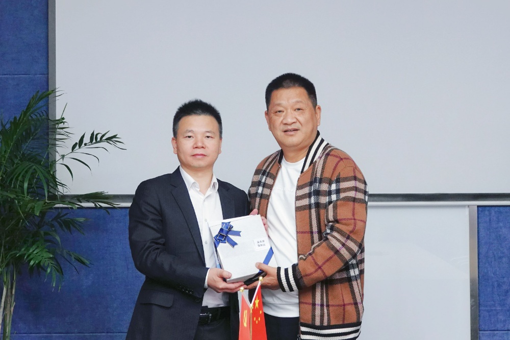 △ 中共海寧市委常委、海昌街道黨委書記、經(jīng)濟(jì)開發(fā)區(qū)黨工委書記徐洪華為芯能科技授牌